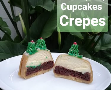 Armado de Postres Espectaculares: Te guiaremos en el montaje de tu Torta Red Velvet, Cupcake Tiramisú y Tronco Navideño de Chocolate, usando los crepes como protagonistas.